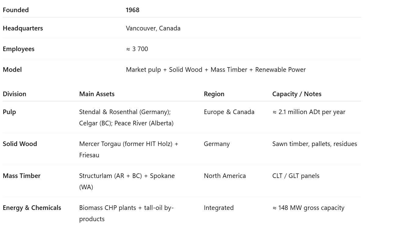 Mercer International stands at the intersection of forestry, energy, and industrial recycling — and right now, the market is pricing it as if all three were in terminal decline. In reality, the company operates high-efficiency pulp mills in Europe and Canada, a solid-wood division, a growing mass-timber platform in North America, and a renewable-energy segment producing steady power.