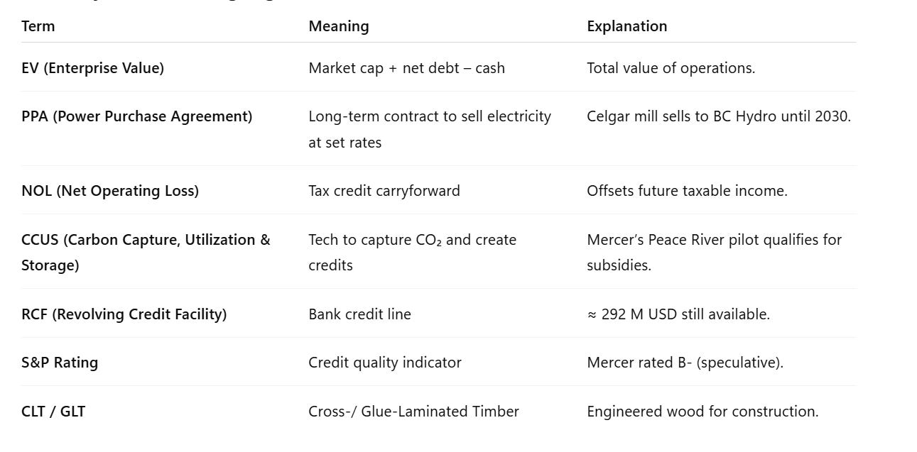 This step came at a high cost — nearly 13 % — but it bought Mercer three to four years of breathing room, ensuring that liquidity and operations remain stable until the pulp cycle turns.